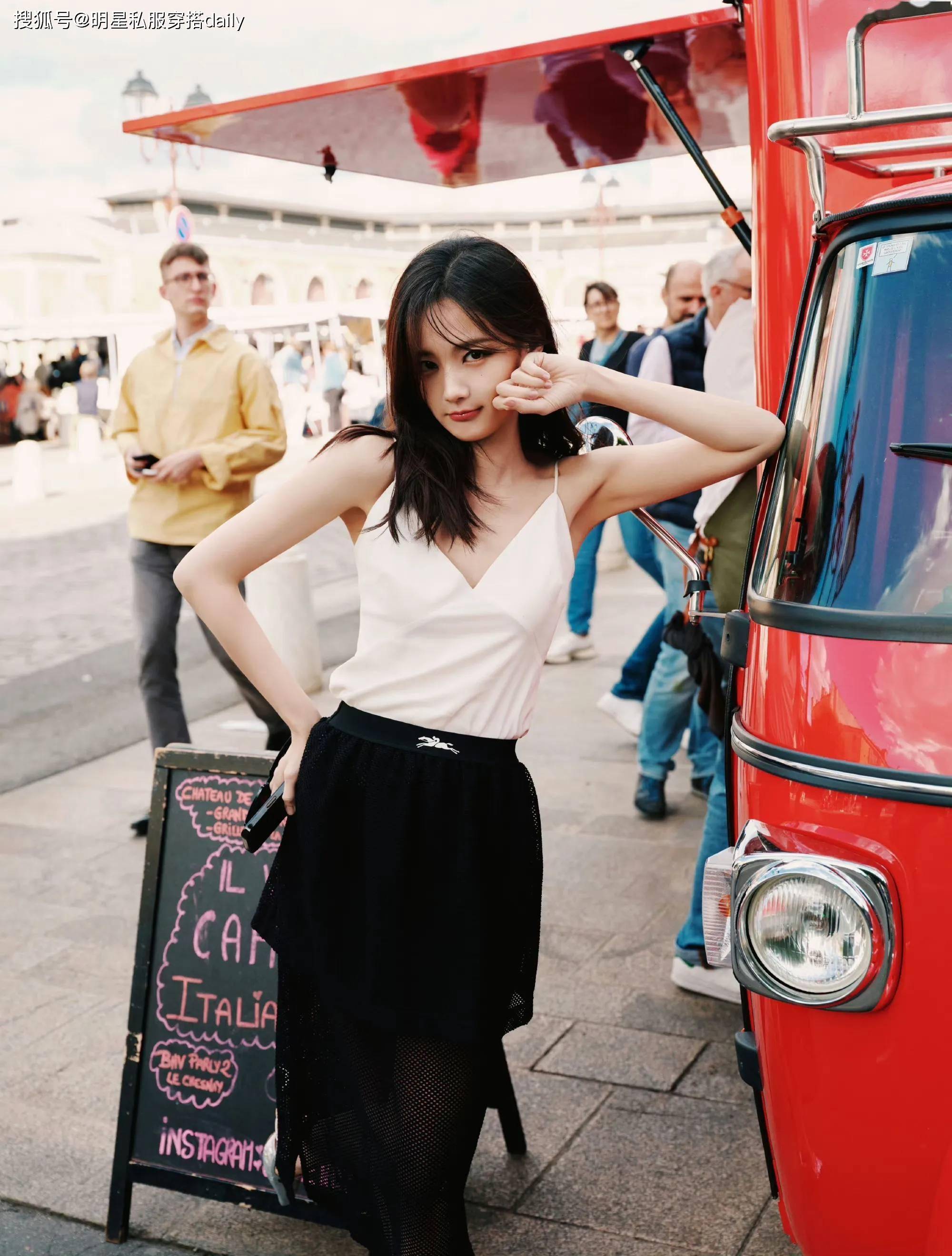 蕾丝款式总是能让人产生一种柔媚感!天生的女性气质神器!李一桐身穿的这件黑色半身裙,款式特别,尤其适合个子娇小的女生!