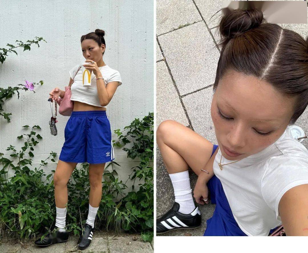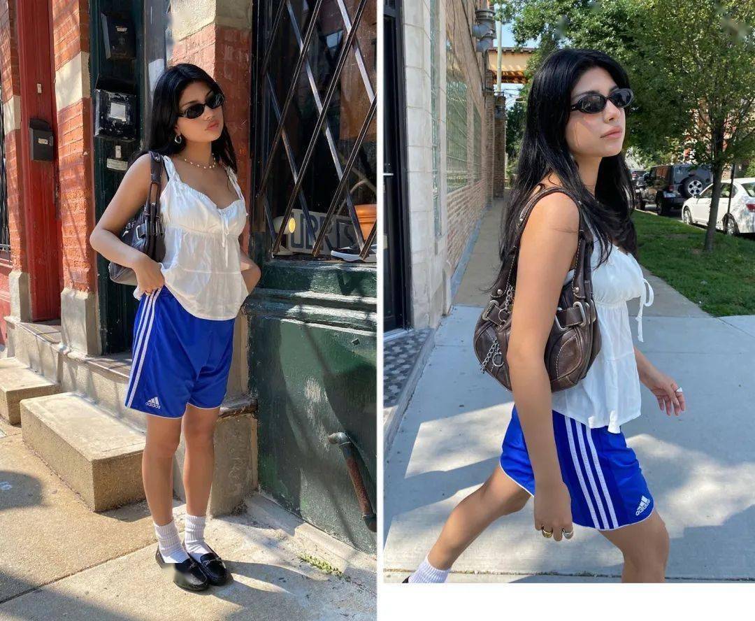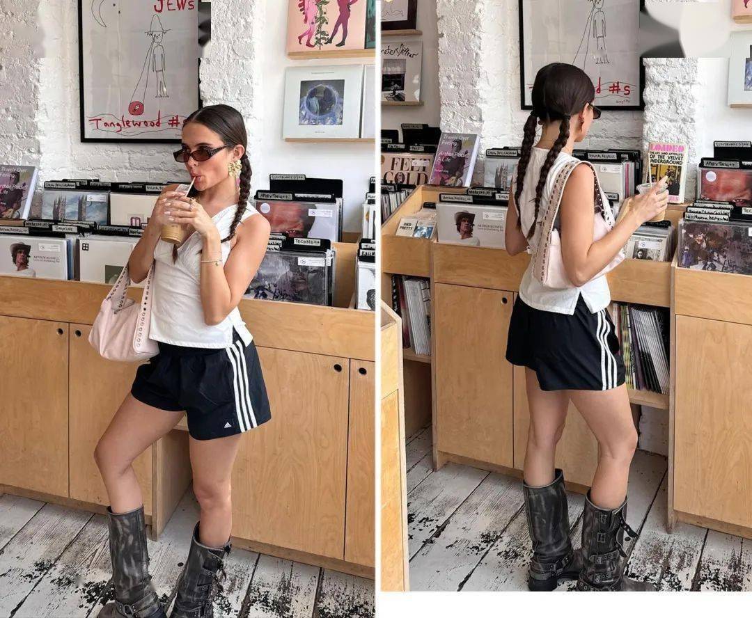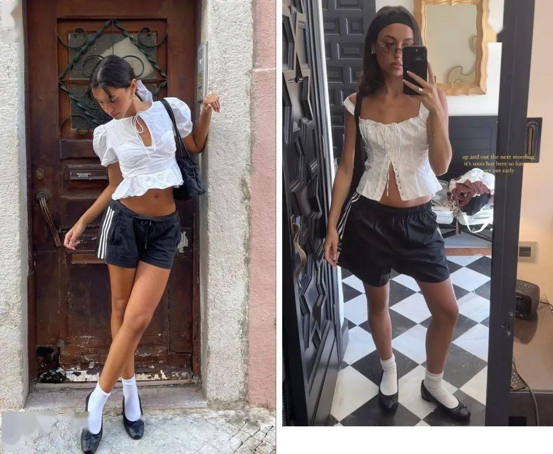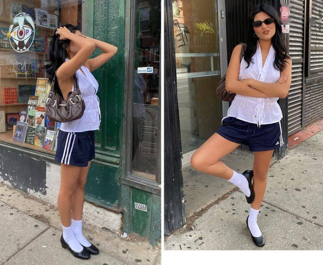 换成白色短裤也是个不错的搭配方案,会更千禧辣妹。