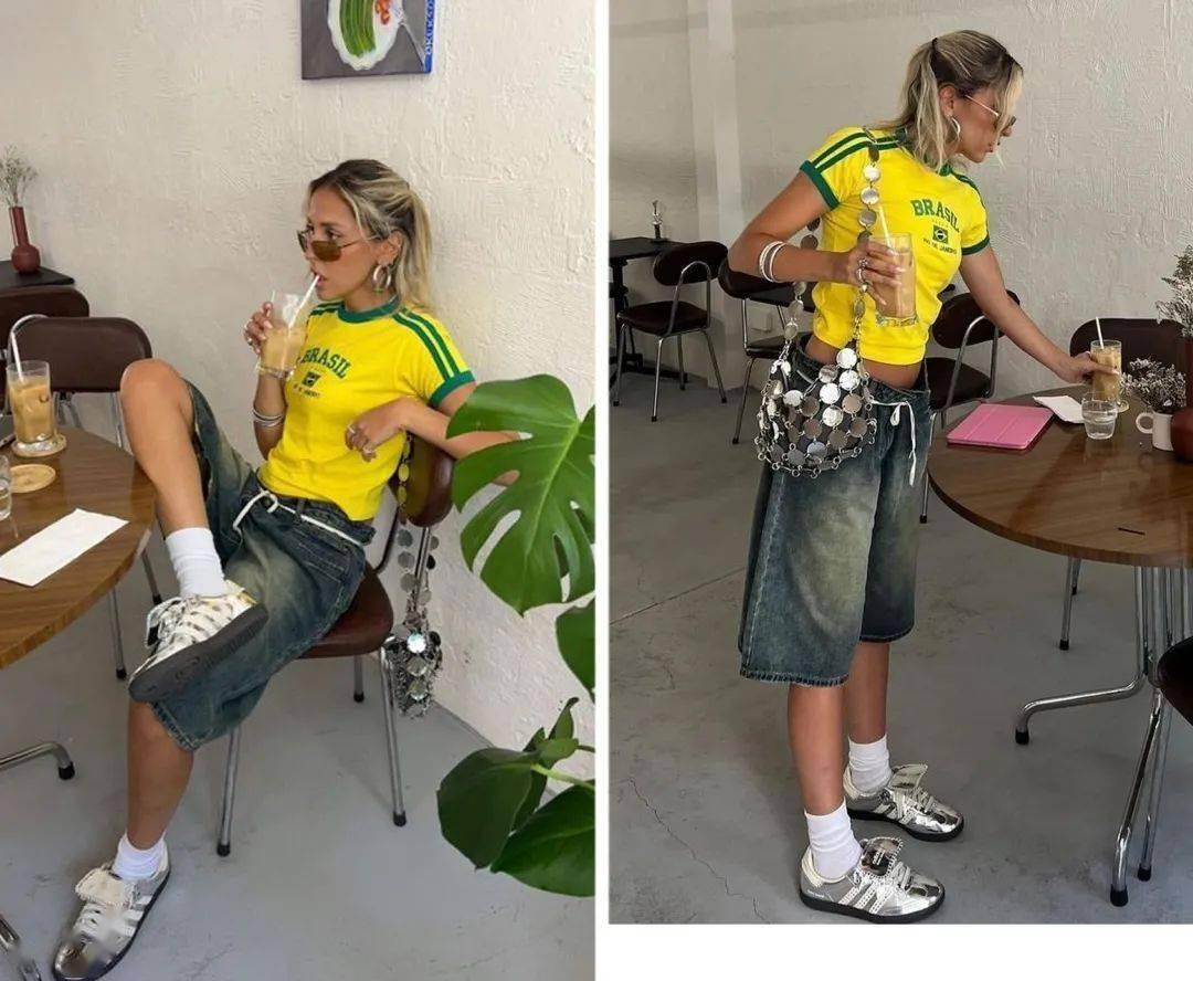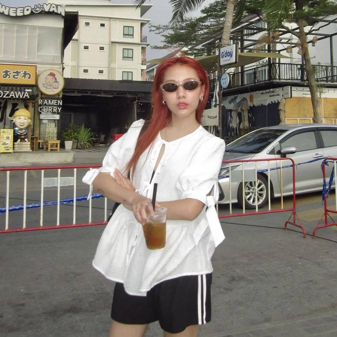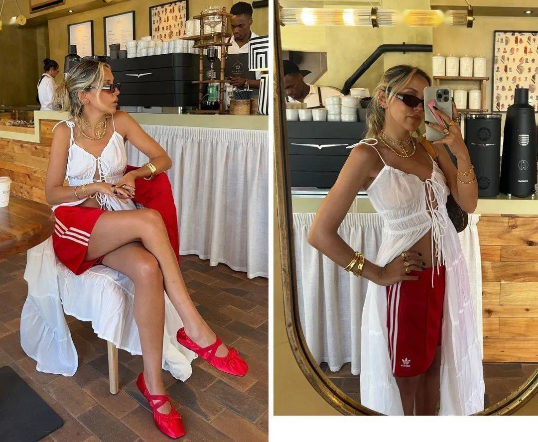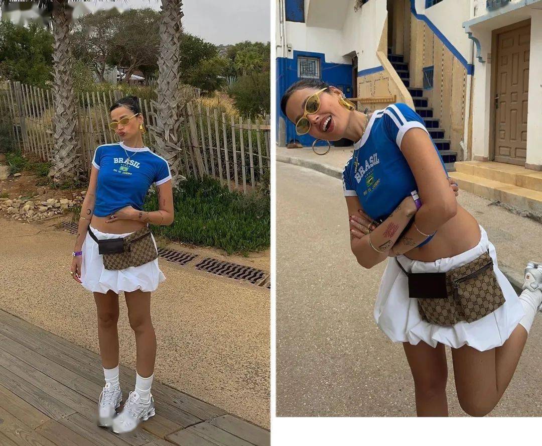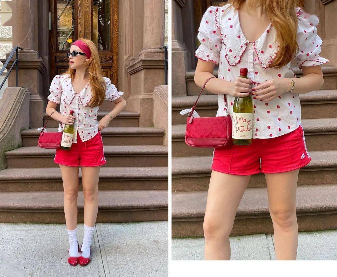 换成白色短裤也是个不错的搭配方案,会更千禧辣妹。