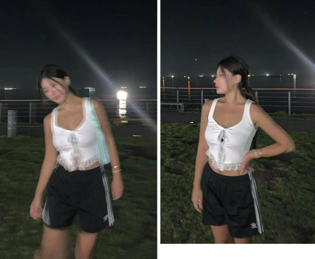 运动上衣?当然也包括运动背心了,配上中裤就很韩女。