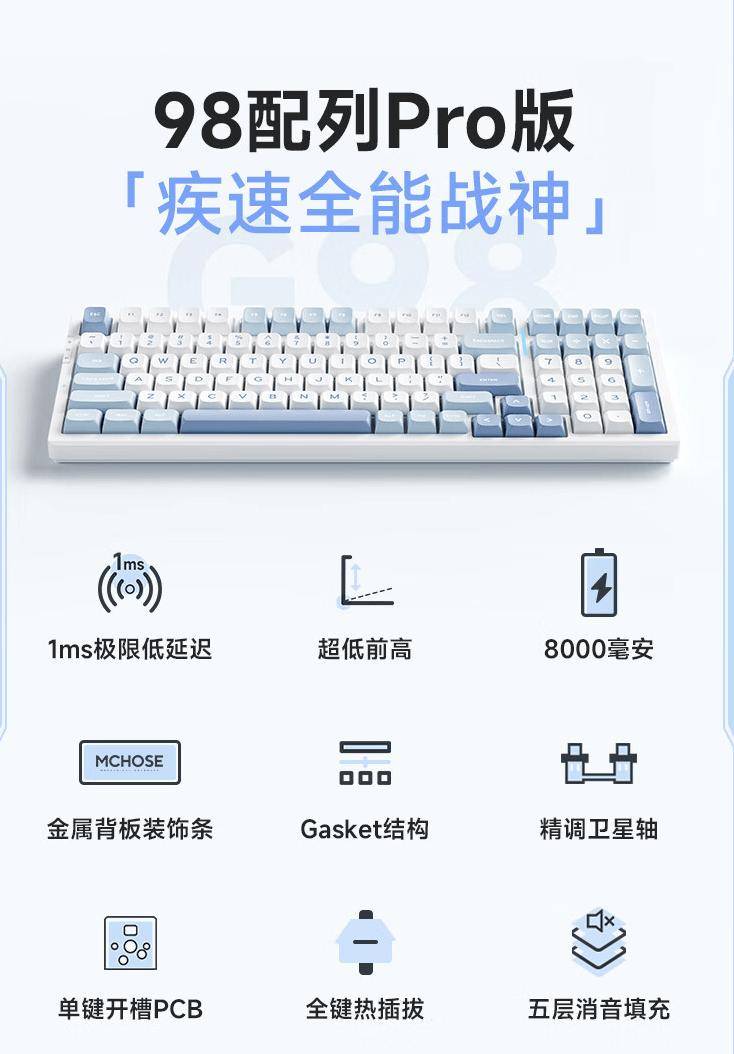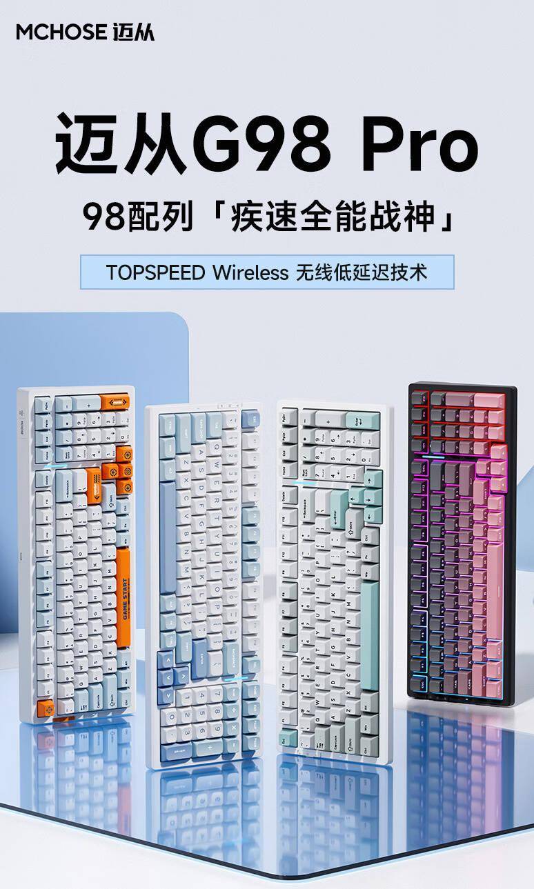 8 月 13 日消息,据迈从官方微博,迈从今天推出 G98 Pro 系列三模客制化竞技键盘,系列键盘采用Gasket结构,可选多种配色轴体,整理价格信息如下: