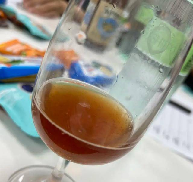外观:偏橘的黄色,泡沫细腻但不多,酒体浑浊。闻香:淡淡的混合果香,海盐味不明显。品鉴:味道偏酸,有明显的梨果味和橘子味,回口有淡淡的咸味。总结:果香+气泡+盐味,深受女性喜爱。
