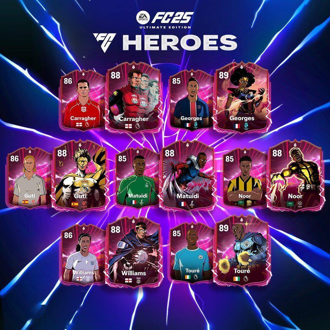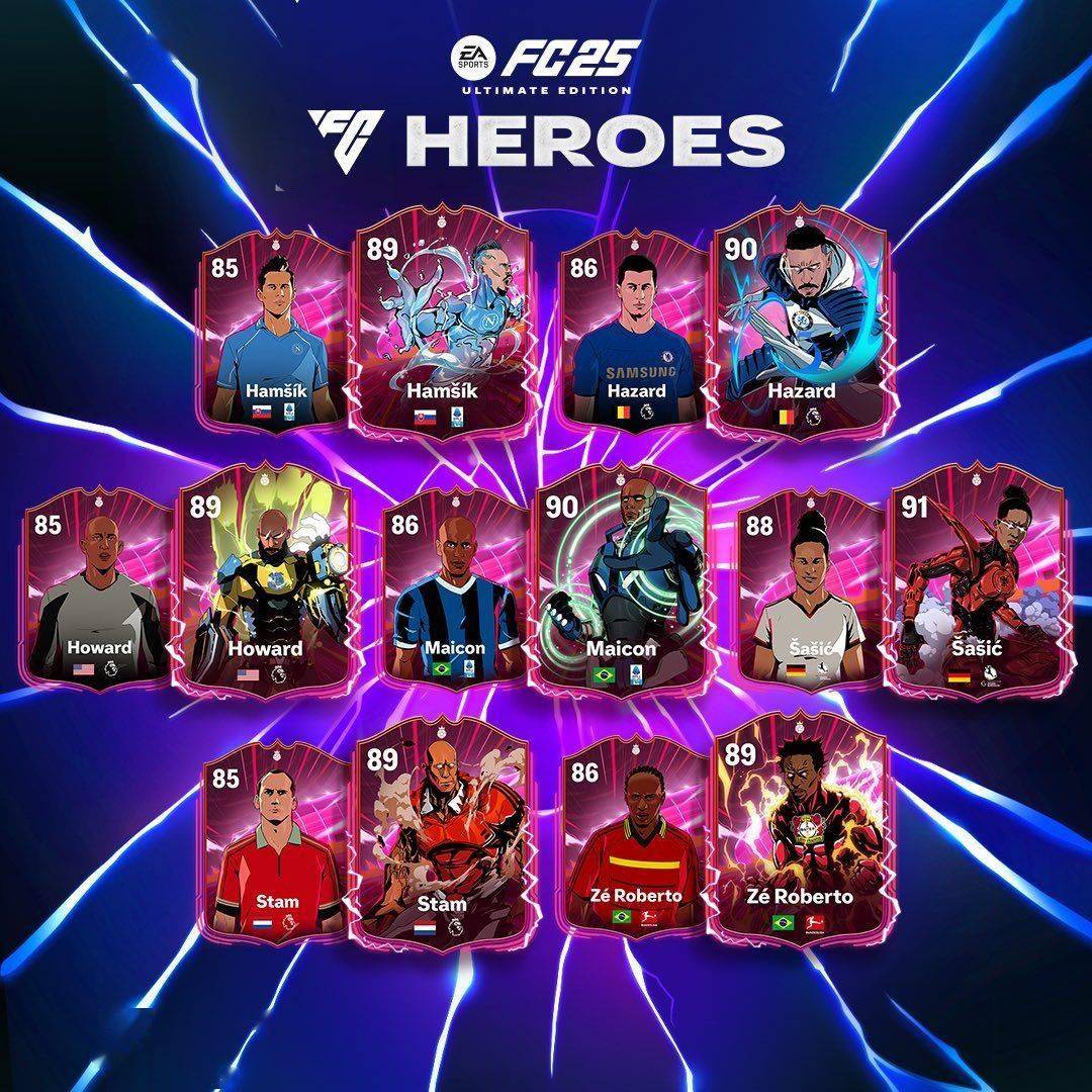 EA 官方已更新游戏页面,宣布为《EA Sports FC 25》游戏引入 13 位新的新英雄(Hero),加入超人足球运动员行列。