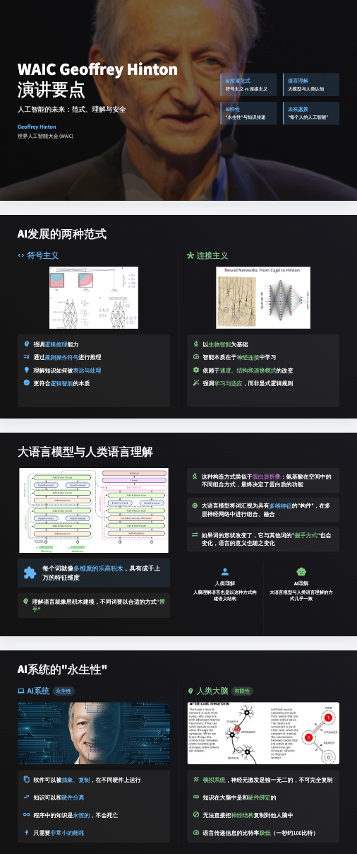 与传统 AI PPT 工具使用模板填充信息不同,GLM-4.5 会自主搜索资料、寻找配图,根据实际材料直接以 HTML 形式编写图文。除了常规的 16:9 比例,还能灵活支持社媒封面、长图、小红书卡片、甚至个人简历。
