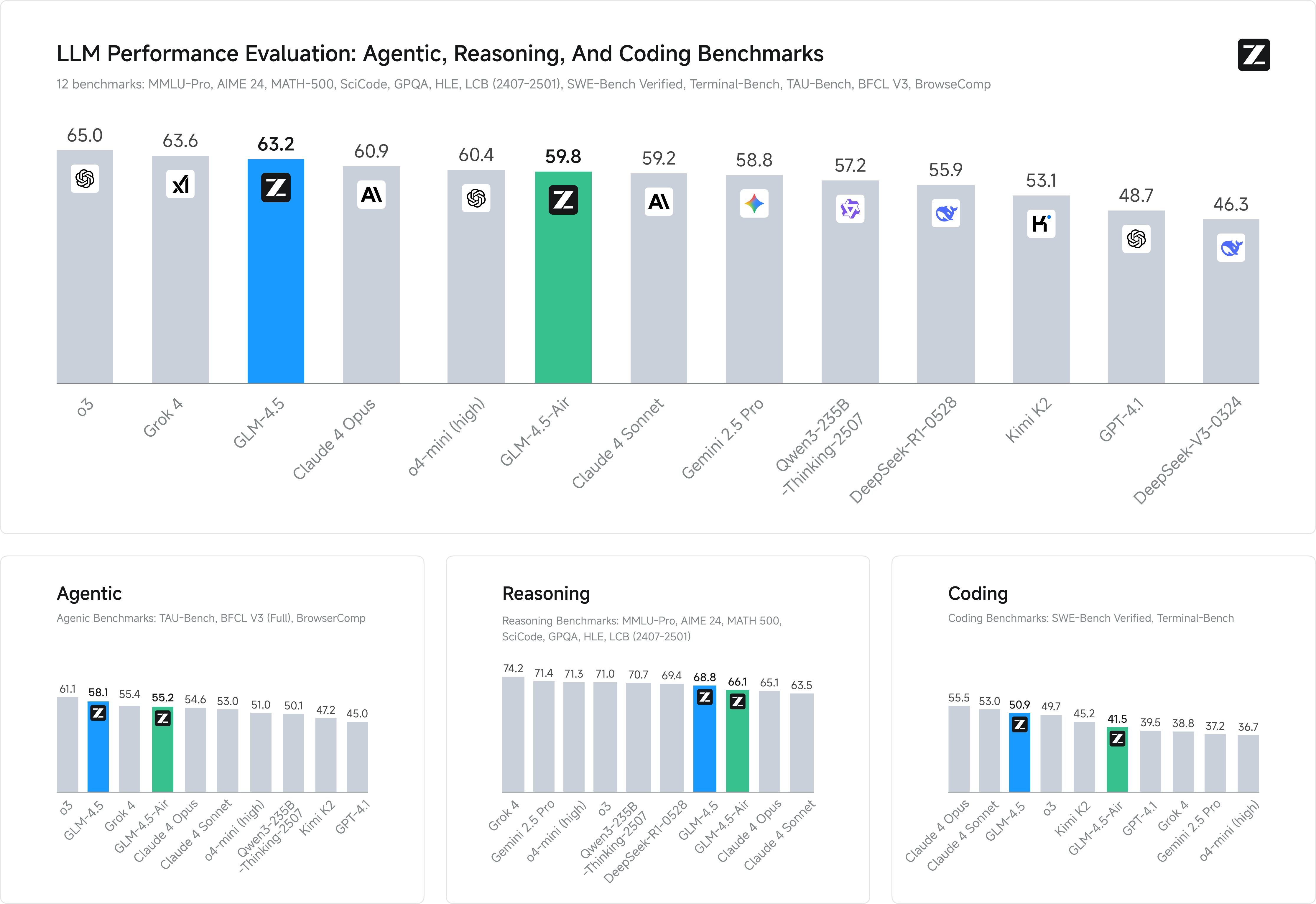 GLM-4.5 在推理、代码、智能体综合能力达到开源模型 SOTA 水平;