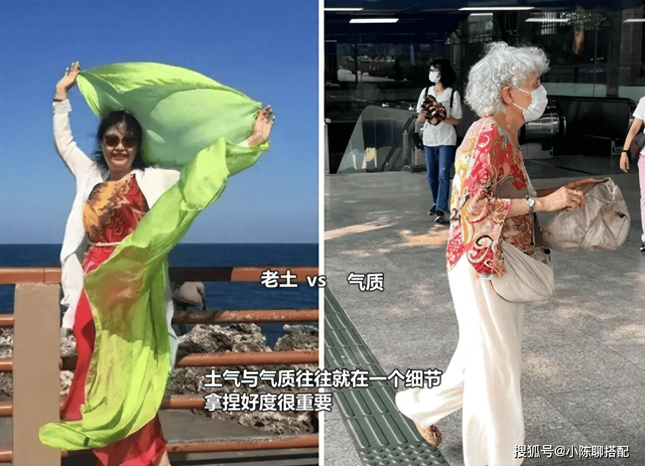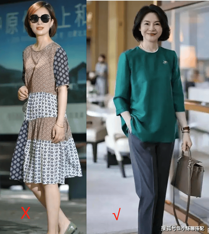 比如说现在市面上很多中老年人的服装都是“暗沉色+老气印花”的款式,虽说带有设计感,也显成熟,但一个不好就显得老气横秋的。即便是保养得当的女明星,穿上都显老土。