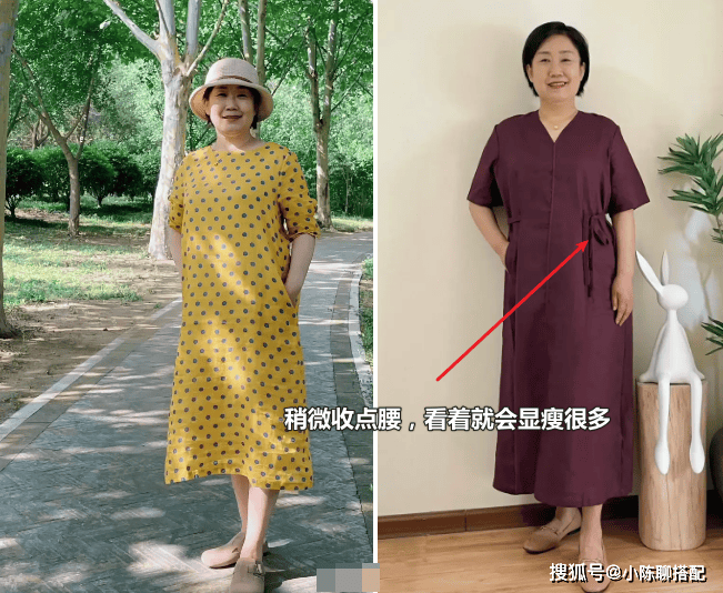 而且腰线的作用不仅是显比例,对于中年女性来说更重要的是有了腰线穿着看上也更有精神。看看同一个人,穿衣有腰线和没有腰线的区别,差距还是非常明显的。