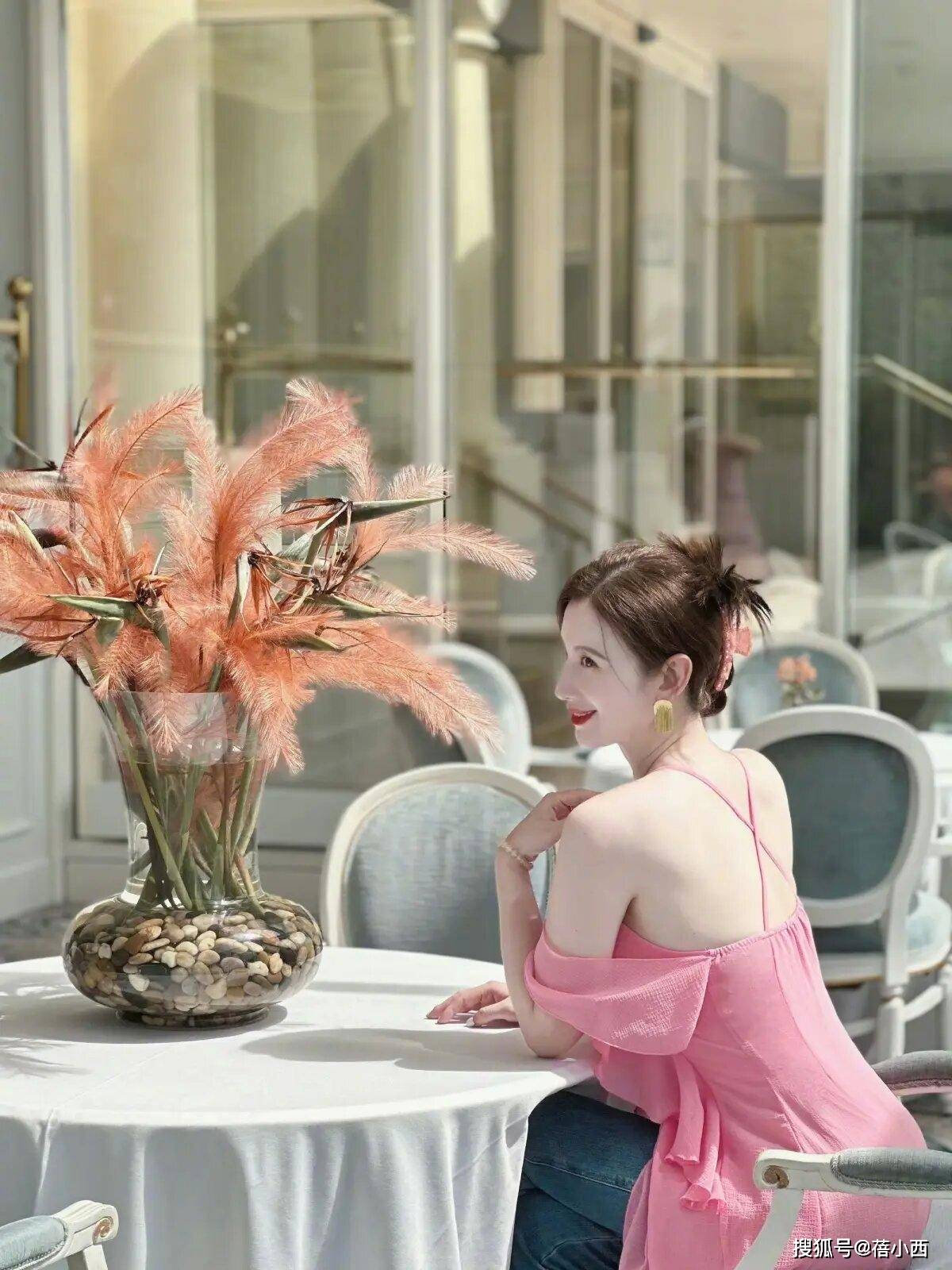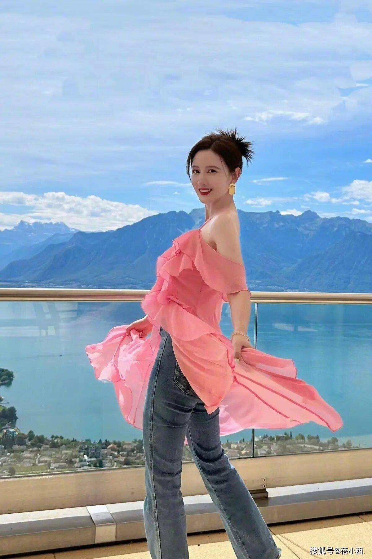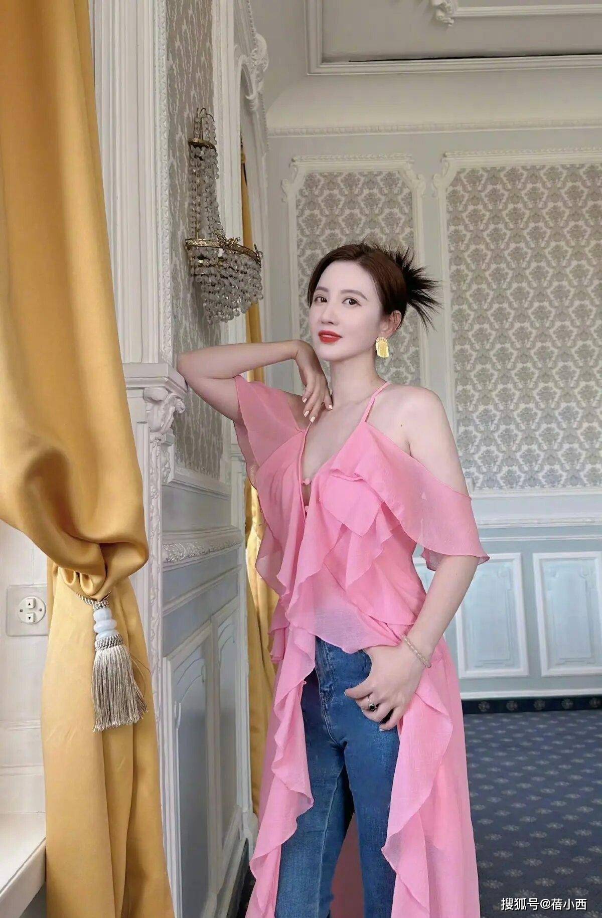 其次是颜色,选择了极具少女感,粉嫩粉嫩的纯粉色色彩,既可以避免整体造型穿出妩媚感,又起到减龄效果,正如此时的张萌,完全不像四十多岁的人。