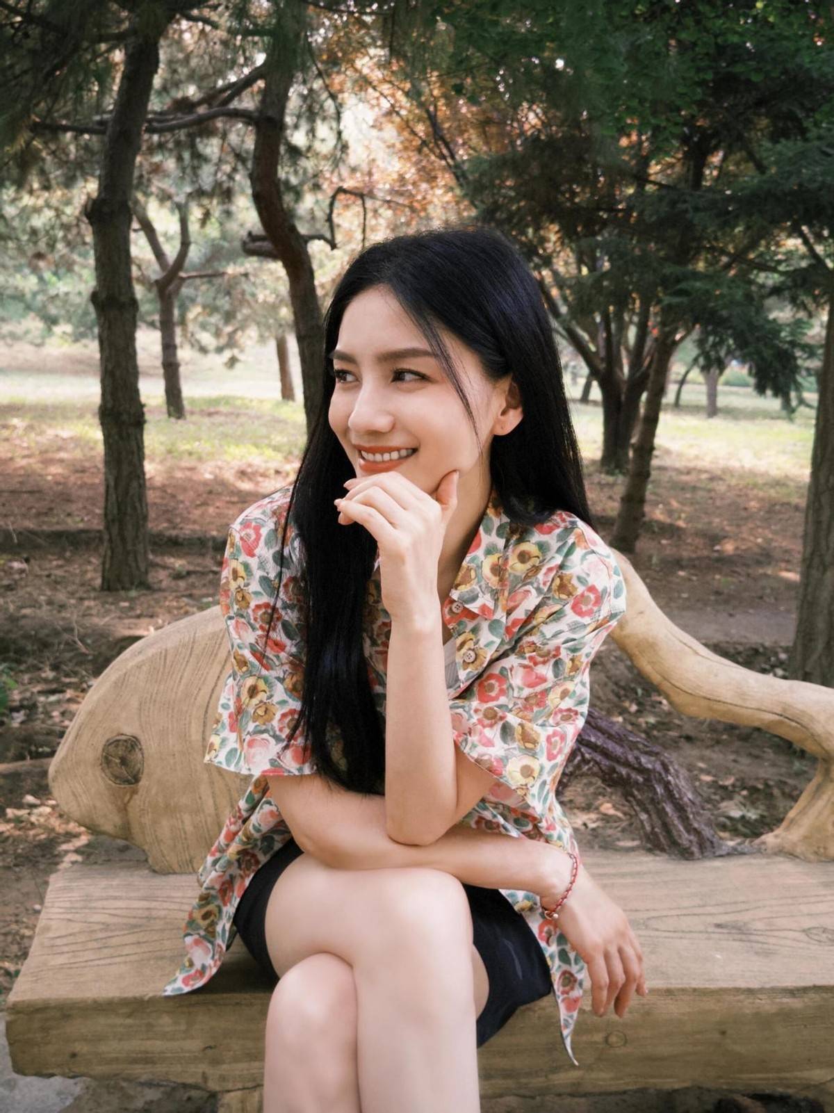 胡可的发型也是值得借鉴的,她并没有选择将头发烫卷,而是留着长发黑色的长发,看上去温柔又知性,整个人都散发着一种非常温婉的气质,和她这身时尚个性的印花衬衫装扮形成了比较明显的对比。