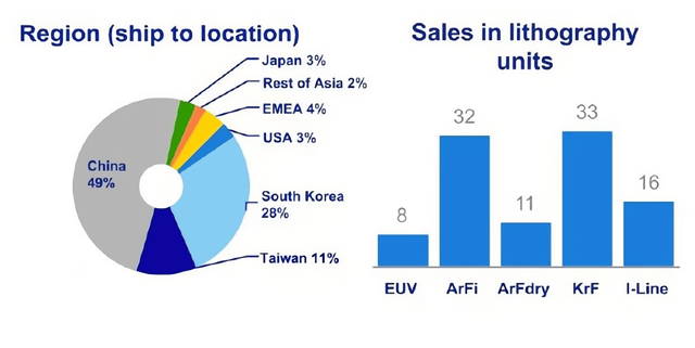再加上韩国的28%,整个亚洲就贡献了ASML光刻机销售的88%,接近9成的比例了。