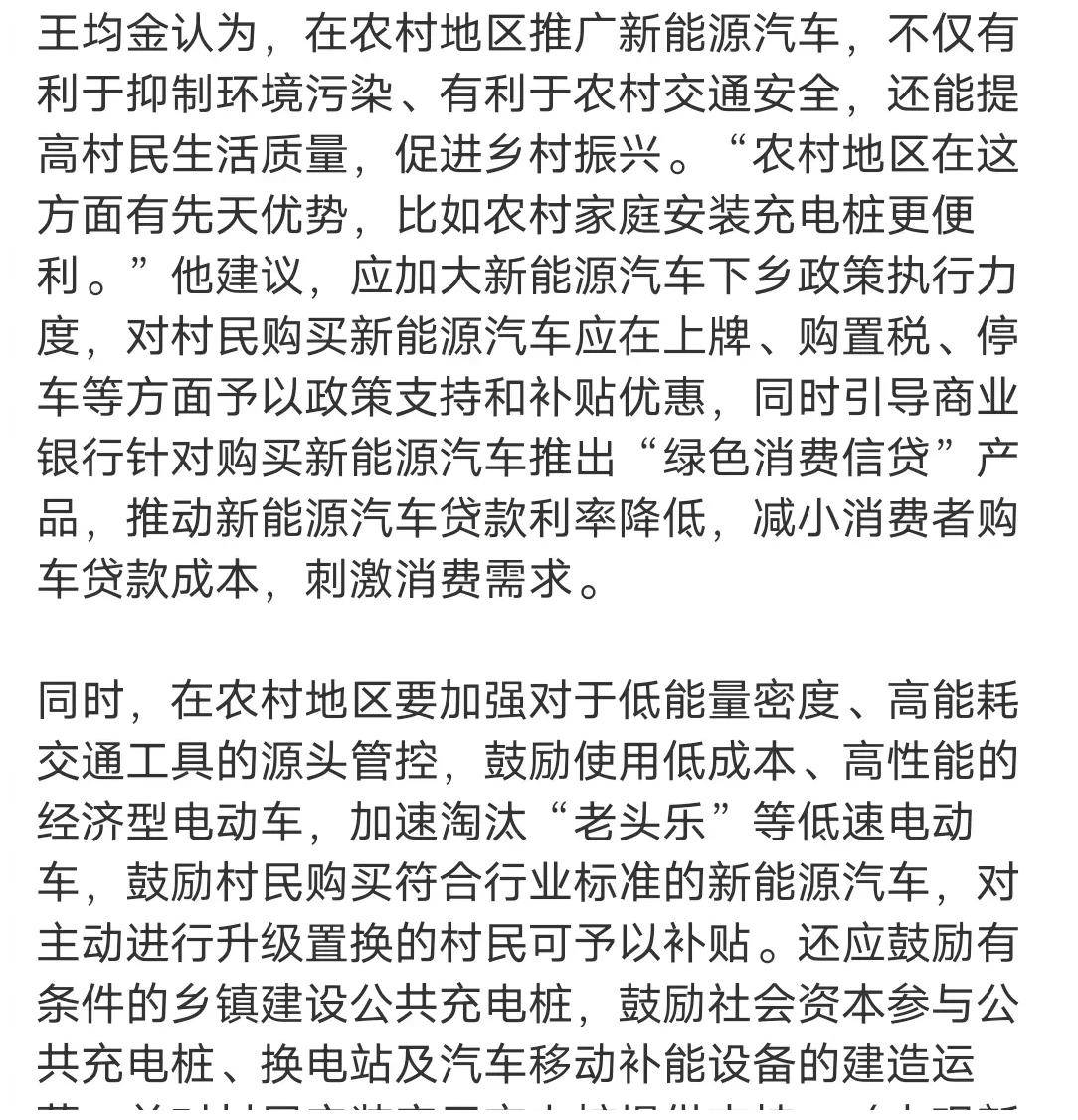 意思就是老年人开着“老头乐”不好管理,不懂交通规则横冲直撞,故而要加速加快淘汰这些“老头乐”,让农村人都换上低成本高性能的新能源汽车。