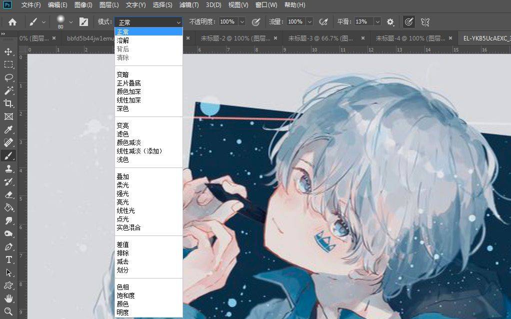 笔刷模式 :跟图层模式一样,有正片叠底、颜色减淡之类的,比如有些水彩笔刷就是正片叠底模式的。