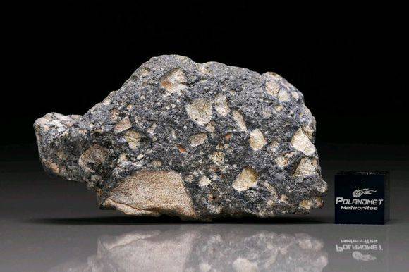在外观上,熔壳剥落后的月球角砾岩陨石与部分地球角砾岩相似,都是由白色岩石与深色岩石胶结在一起,如本文中的角砾岩月球陨石,此类陨石是最像地球岩石的月球陨石。