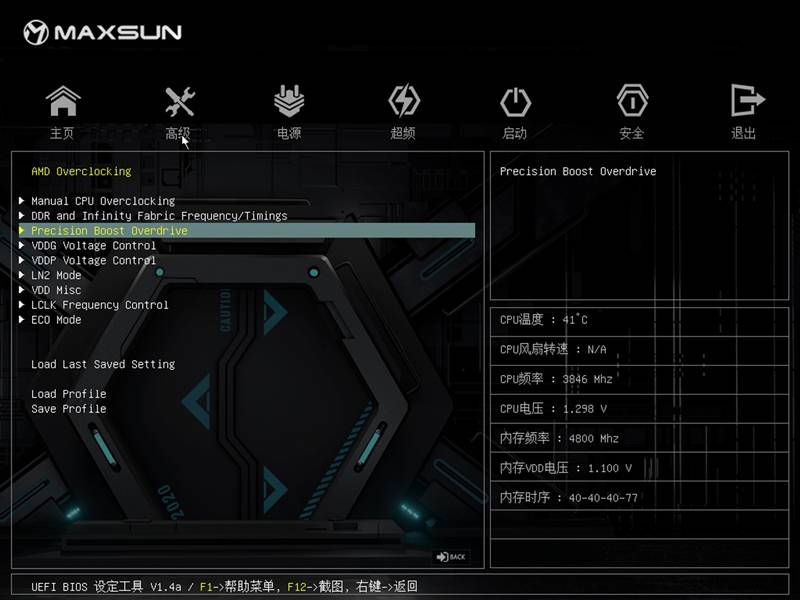 超频界面可以调整CPU频率、电压。