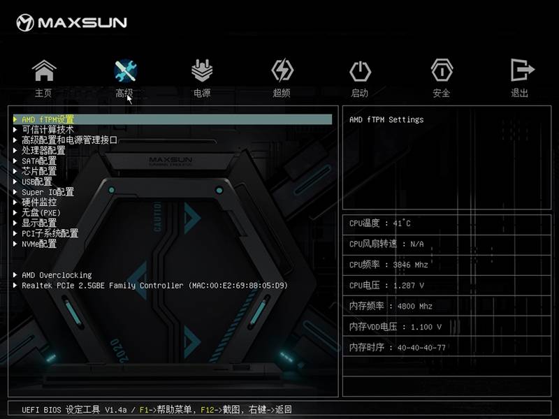 略显遗憾的是BIOS中内存时序小参选项不够全面、功耗显示也不太准确,希望铭瑄后续的BIOS更新能带来更多的功能。