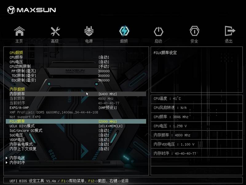 可以支持内存一键XMP超频,设置FCLK频率、UCLK分频。