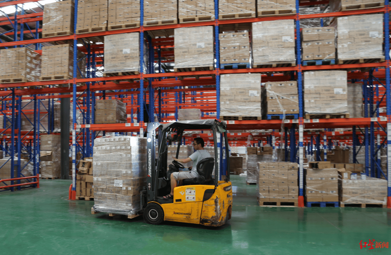 走进位于成都高新综合保税区双流园区的成都优时通进出口贸易有限公司保税仓,只见工作人员正有条不紊地为奶粉罐打包、装箱、封口,现场一片热火朝天。这些来自海外的母婴产品,经过成都中转,即将由运输的工作人员装入货车,发往全国各地。