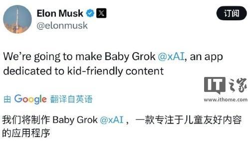 此前在今年 7 月,马斯克曾宣布,xAI 将开发一款专为儿童设计的应用“Baby Grok”,为儿童提供“友好型内容”。