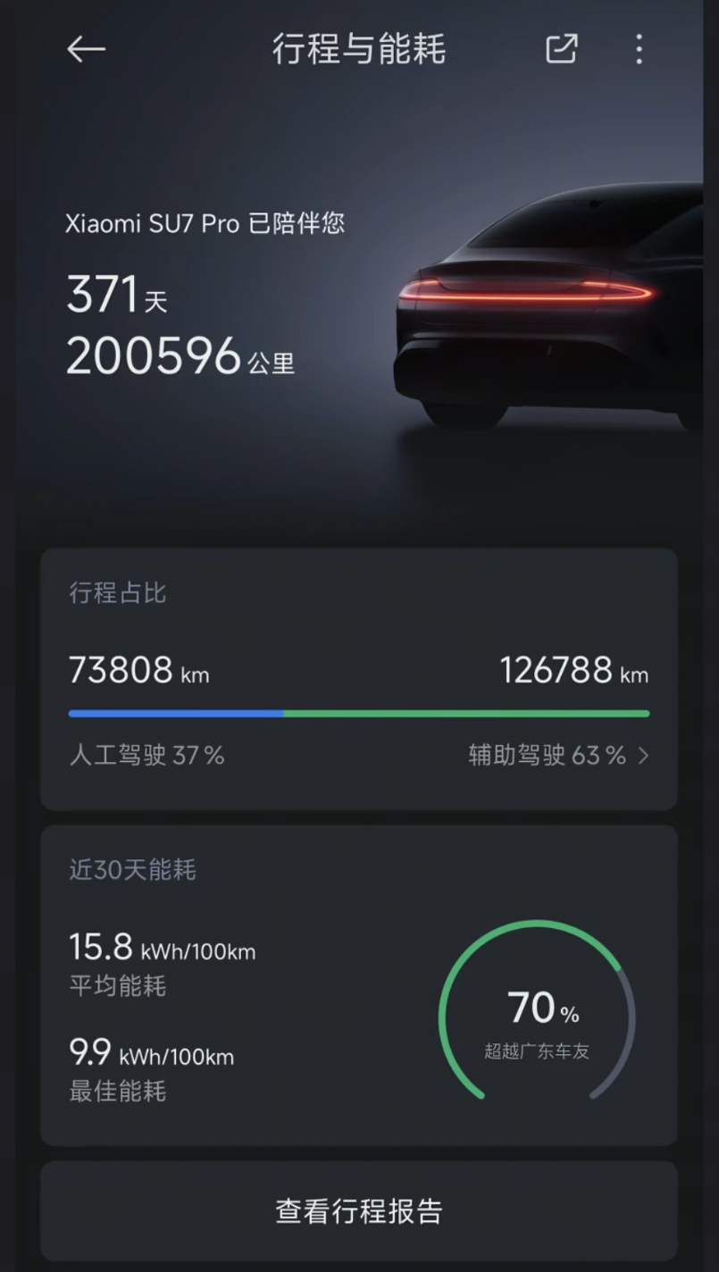 近日,一位小米SU7 Pro车主晒出自己行车数据引发关注。