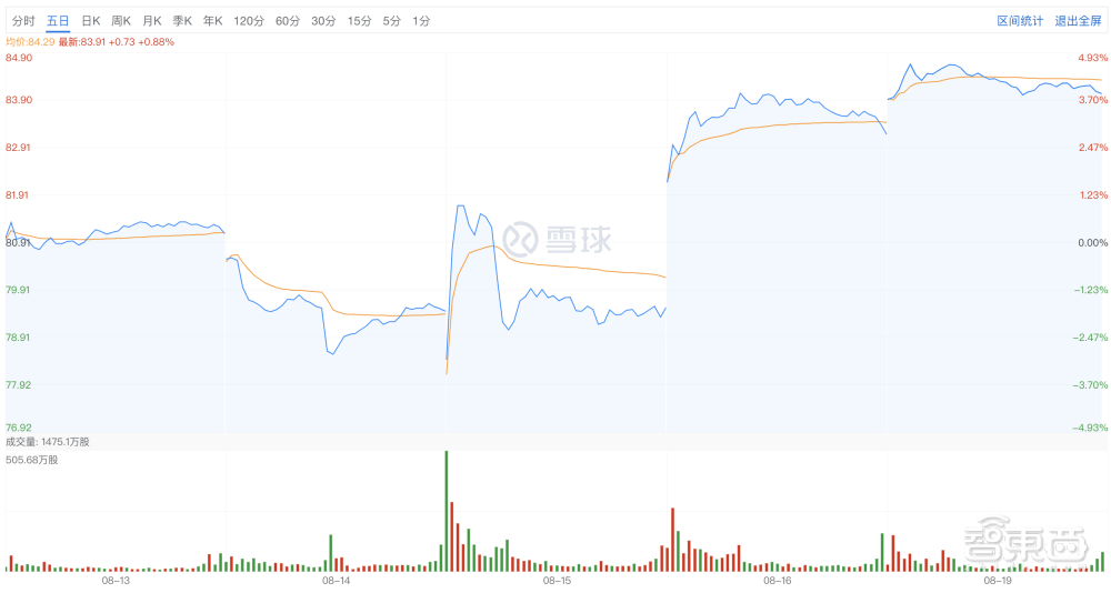 自8月15日阿里巴巴财报发布后,其美股股价多次上涨冲高,截至8月19日收盘价为83.91美元/股,相比于8月14日收盘的79.41美元/股,同比上涨约6%,业内分析这离不开阿里云增长带来的积极信号。