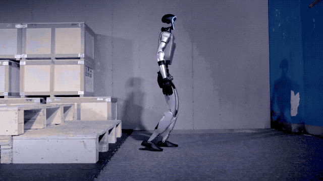 此外,G1 在平地上可以提速奔跑,上下楼梯也更加平稳,明显在下半身的控制方面更强了。