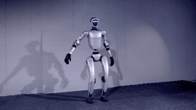 官方演示视频显示,升级后的G1人形机器人量产版可以单脚跳、360° 旋转跳,还能模仿马力欧顶金币的动作。