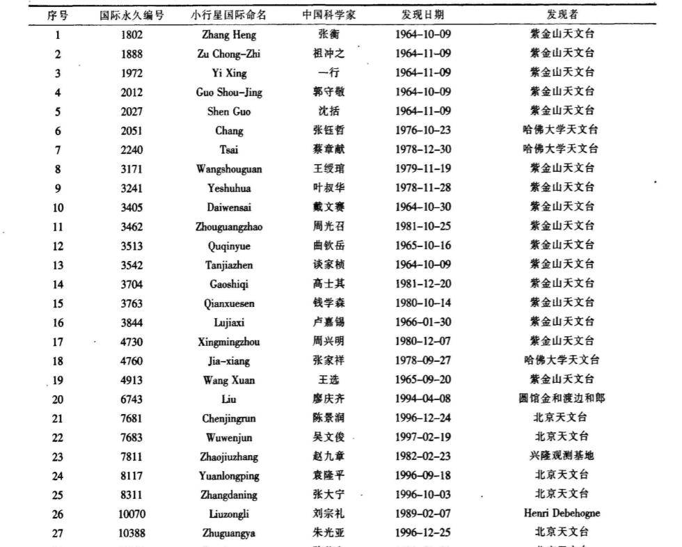 比如1964年第一批被以中国人名字命名的张衡、祖冲之、沈括,90年代的陈景润、袁隆平,演艺界的张国荣,唐代诗人李白、杜甫等。