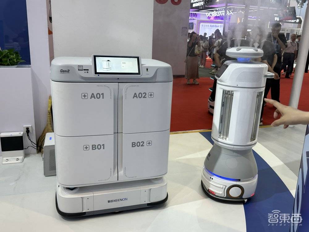 除了人满为患的人形机器人展台,配送、清洁、手术这类早已经上岗就业的机器人仍是机器人大会的一大亮点。