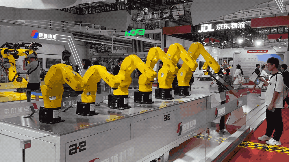 除了人形机器人,京城机电的机械臂跳起了“刀群舞”,为这场盛会增添了更多的科幻色彩。
