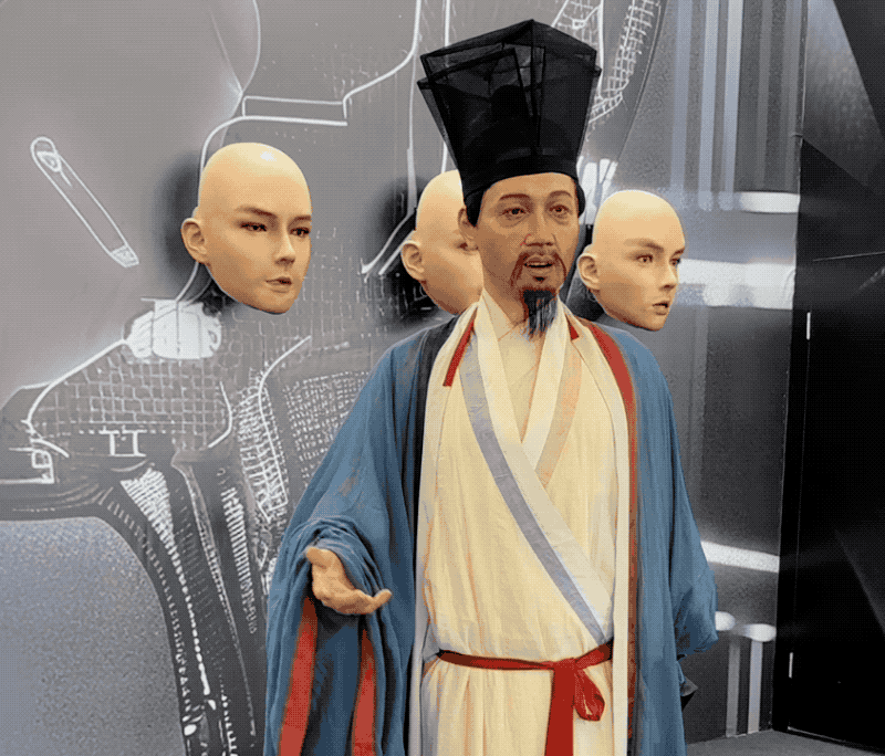 中间是形似苏轼的人形机器人,现场还和观众battle起了诗词。
