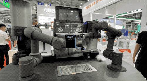 还有遨博智能的咖啡机器人,制作咖啡、拉花一气呵成,最后的拉花成果也十分精致。