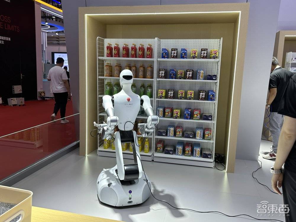 智元机器人的人形机器人在现场做起了展台前台,承担了和观众打招呼的工作。