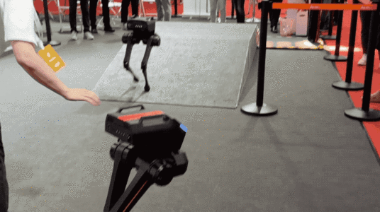 看完机器人大秀,一扭头就是宇树科技的机器狗跑酷,翻墙越障都不在话下,引起周围小朋友们的阵阵惊呼。