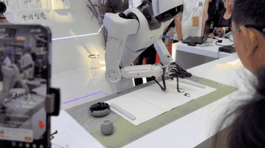 星尘智能机器人直接在现场大笔一挥,写出了一手绝佳毛笔字。