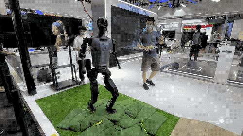 刚进门就看到了EX机器⼈展台中的人形机器人大秀。