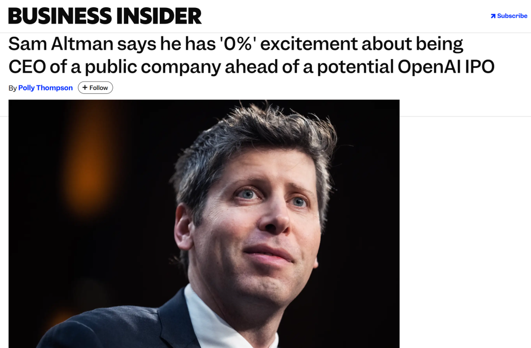 奥特曼直言,作为一家仍然需要巨额资本投入的公司,OpenAI迟早会触及股东人数、融资结构这些现实问题。