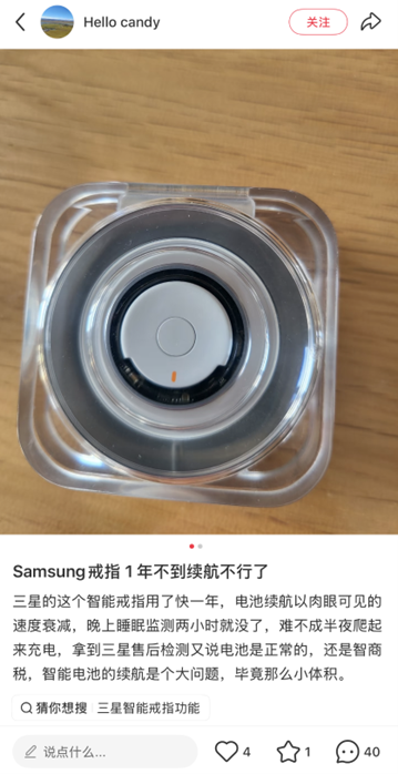 比如三星Galaxy Ring的“一次性”特点,以及前文提到的Daniel的案例和大量的电池续航投诉,使得人们对智能戒指的判断是:技术似乎尚未完全成熟。