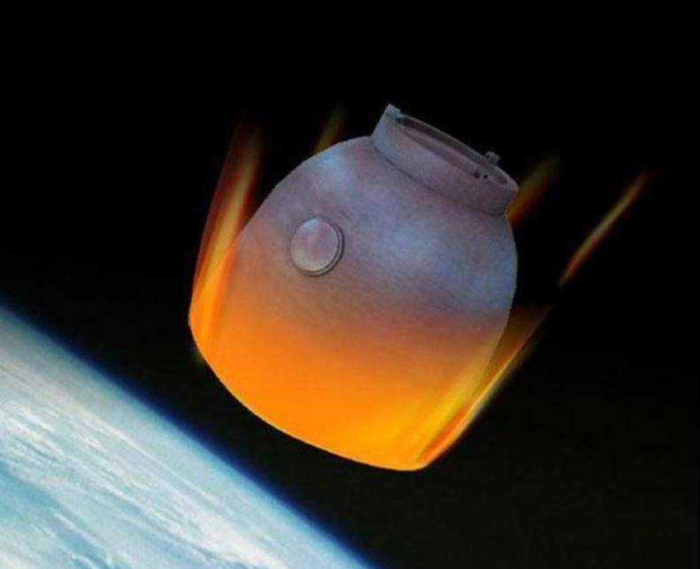 失去动力的返回舱就会像撞击地球的陨石一样超高速地向地表坠落,舱体外壳与大气会进行极其猛烈的摩擦、生热,导致舱体外壳形成高达几千度的高温区。