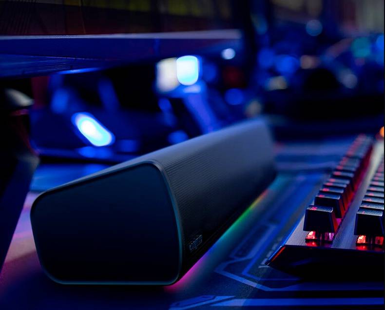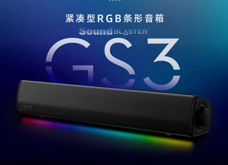 这款产品的外观为长条形设计,能放置在电脑显示器下方,既节省桌面空间,又将发声单元置于正中间。GS3 音箱斜向上的设计,能让发声单元对准人耳方向,从而带来最优的音频体验。创新 GS3 游戏音箱还具备多种灯光预设,以炫彩光效营造电竞氛围。