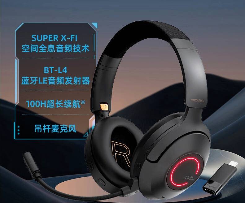 在连接方式上,创新科技Zen Hybrid Pro SXFI 头戴式蓝牙耳机附带BT-L4蓝牙发射器,支持蓝牙LE广播、多点蓝牙连接等技术,并且在激活ULL模式后可实现20ms的超低延迟。无论是享受单机游戏《黑神话:悟空》还是其他游戏,你都可以拆卸吊杆麦克风以获得更舒适的佩戴体验。
