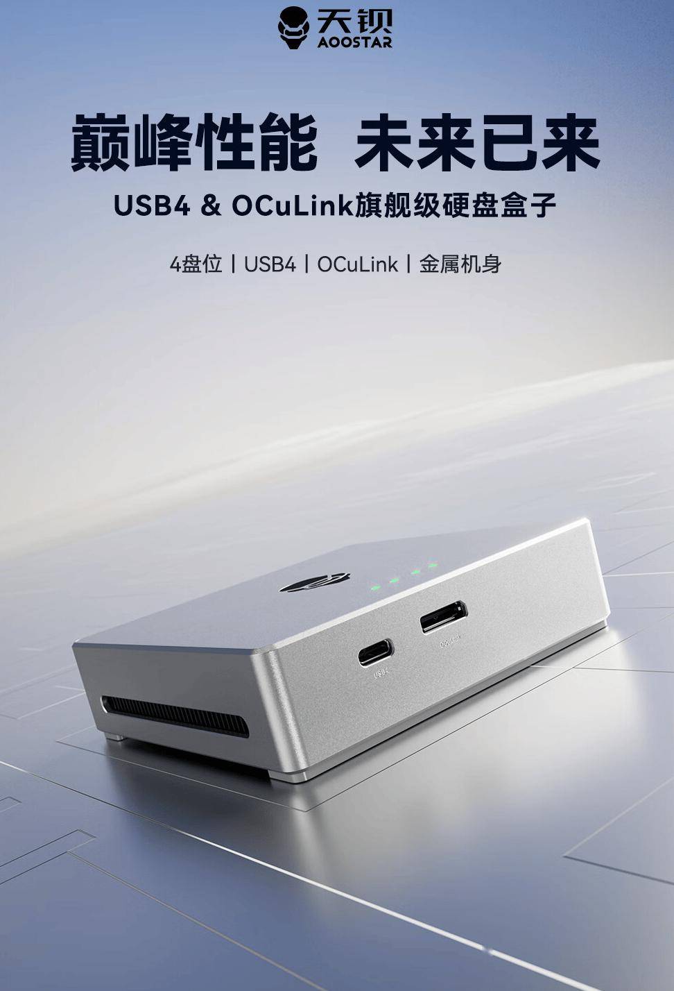 8 月 24 日消息,天钡 TB4S-OC 四盘位硬盘盒目前已在京东开售,该硬盘盒自带 USB4 和 OCulink接口,售959元。