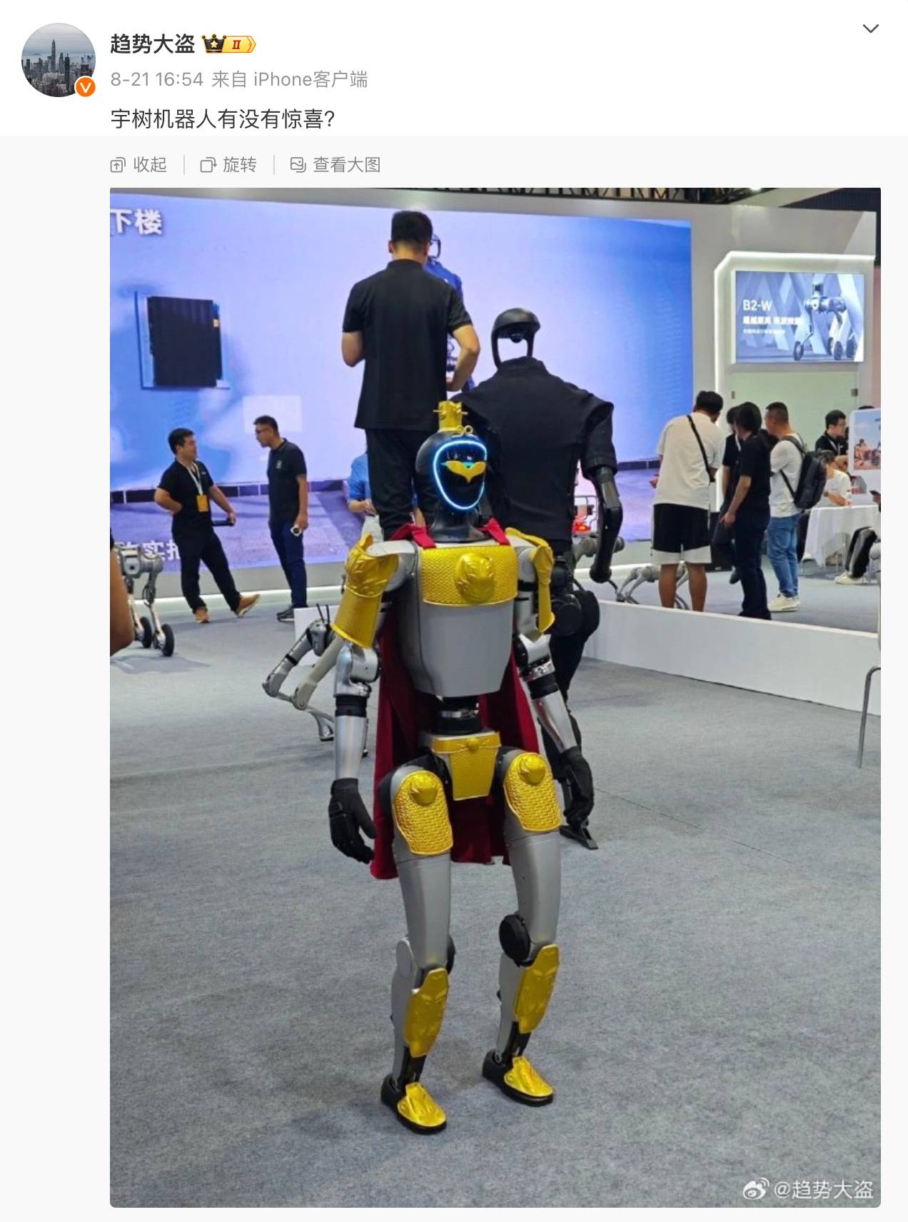 悟空皮肤的 G1 人形机器人,图/微博