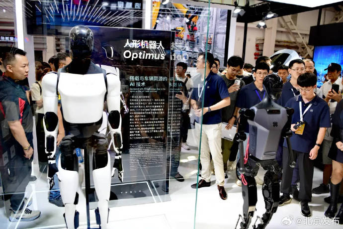 北京具身智能创新中心最新升级的「天工 1.2 MAX」,在各个展台间穿梭、行走; 特斯拉人形机器人「擎天柱(Optimus)」,继续在玻璃展柜中展示它的「高冷」; 还有一位「悟空」身披红色斗篷在人流中走来走去,实际上这是宇树科技推出的 G1 量产版人形机器人; 优必选的 Walker S 系列人形机器人,则在展台上给奥迪 RS5 的轮胎现场做质量检查; 乐聚的「夸父」人形机器人则基于 OpenHarmony 搭载华为盘古具身智能大模型,在现场展示了叠衣服、洗碗、做华夫饼等家务活动; ……