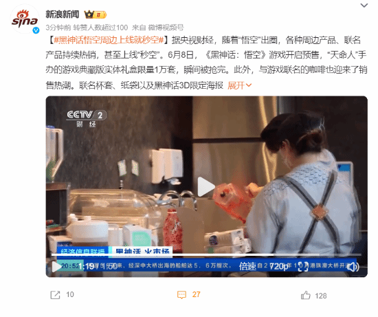 黑神话:悟空一经推出便引发了广泛关注,游戏中的各种周边产品也持续热销。根据央视财经报道,该游戏的实体典藏版手办在预售阶段便被抢购一空,限量1万套的游戏联名商品同样炙手可热。此外,与黑神话:悟空联名的咖啡、杯套、纸袋以及3D海报也受到了消费者们的青睐。