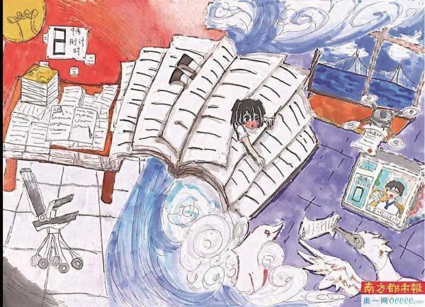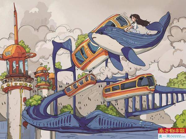 用画笔来构筑未来世界,用想象来探索未来城市——这是深圳学子们正在接力的行动。由深圳市宝安区石岩湖学校学生手绘的一组美术作品,寄托了少年们对城市发展,技术迭代,生活与学习方式变迁的思考。