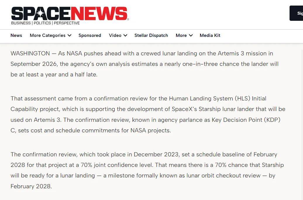 最为关键是,美国重返月球计划还有其他的项目也在缓慢推进,在今年,美媒“spacenews”也是再次指出了,有可能因为美国星舰着陆器的研发,会继续延期。