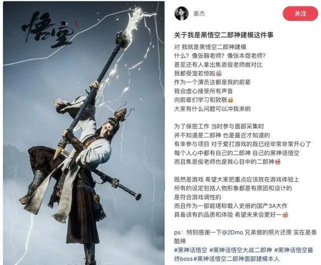 王国豪杰还透露,为了保密工作,当时参与面部采集时,王国豪杰并不知道是“二郎神”,也是最近才知道的,同时也希望大家把重点应该放在游戏体验上。
