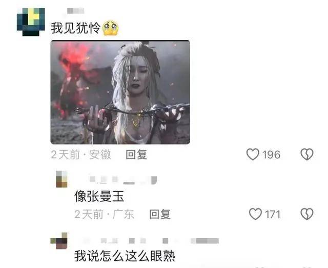 “被铁扇公主美惨了,怎么越看越有故人的样子。”继二郎神撞脸张翰、“金池长老”撞脸李斌后,大家又被铁扇公主迷住了,有网友表示,即使白发的铁扇公主也风韵犹存,近景神韵更是像极了张曼玉,还有网友提出:电影版可以请张曼玉来演,一整个期待起来了。