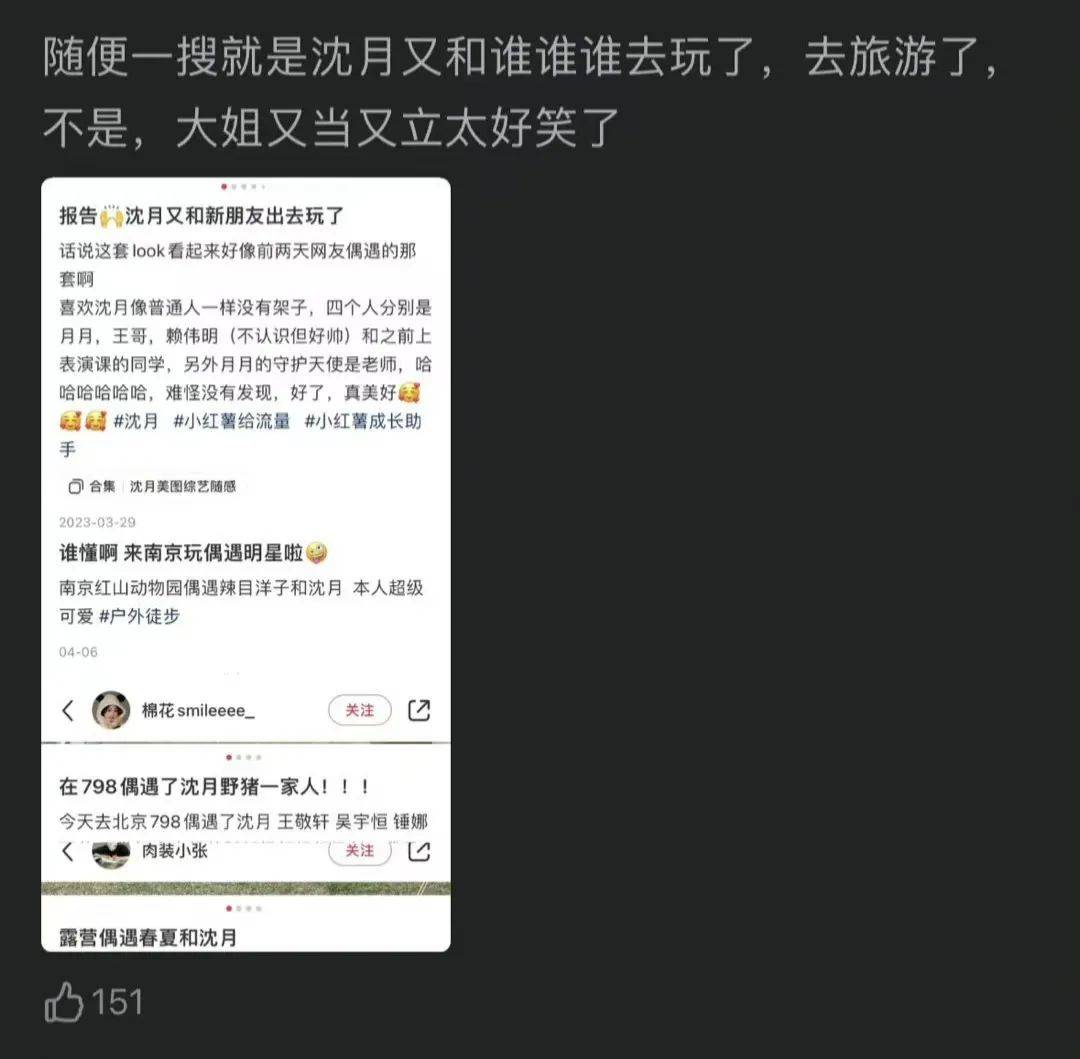 基本上沈月参加节目都会哭,有网友提出质疑,沈月经常分享出去玩的视频,却没空陪外婆,让人无法共情。