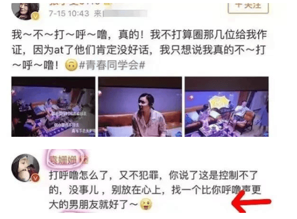 后来,张小斐发文再次解释,她说她真的不打呼噜,袁姗姗过来讽刺地说道,“打呼噜怎么了,别放在心上,找一个比你呼噜声更大的男朋友就好了”。